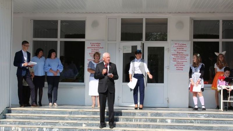 В торжественной линейке школы №6 принял участие депутат Государственного Совета Татарстана Леонид Якунин.