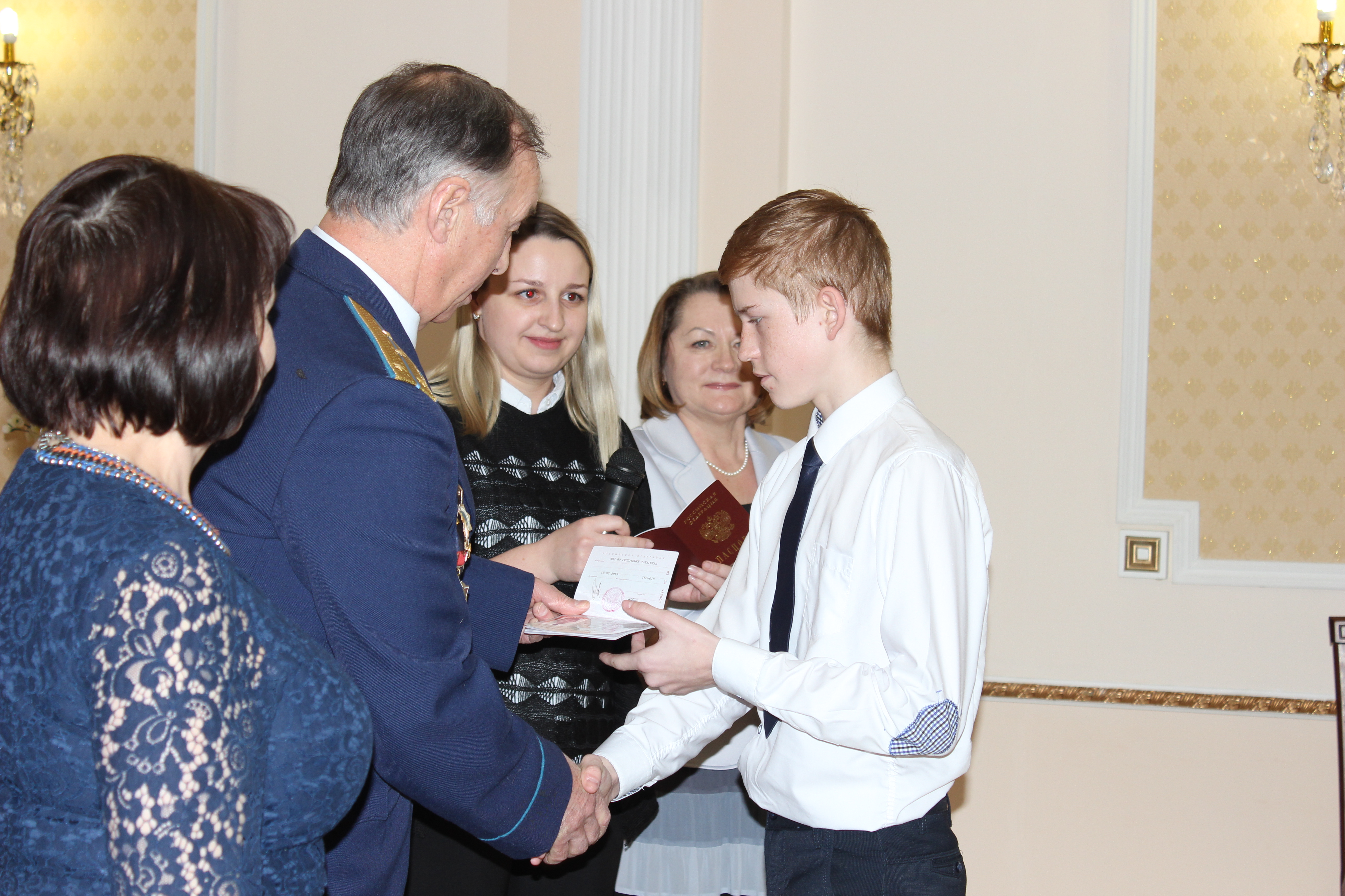21 февраля в отделе ЗАГС Исполнительного комитета Бавлинского муниципального района состоялось торжественное вручение паспортов 16 молодым бавлинцам. Мероприятие было посвящено Дню защитника Отечества. Вручая документ, заместитель руководителя Исполнительного комитета Бавлинского муниципального района И.И. Хуснуллина, ветеран боевых действий, капитан в отставке Н.М.Тутаев пожелали молодым людям быть патриотами России. Ребят и их родителей поздравили начальник отдела ЗАГС С.Т. Мурсалимова, руководитель местного отделения «Молодая гвардия» В.А. Будин и старший инспектор отделения по вопросам миграции ОВД в Бавлинском районе Н.С. Четвертакова..jpg)