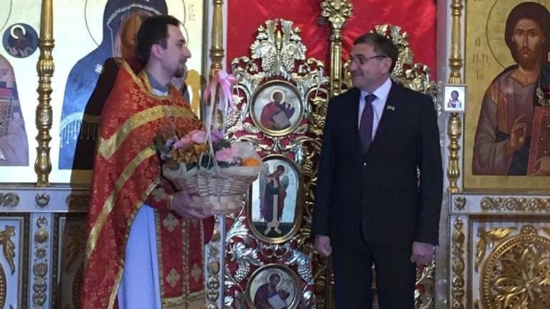 Перед началом богослужения прихожан поздравил заместитель главы Бавлинского муниципального района Ринат Хамидуллин. Он пожелал всем мира и добра и в знак дружбы между христианами и мусульманами вручил настоятелю храма корзину со сладостями.