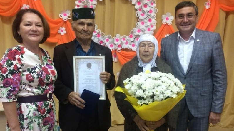 От имени руководства района Зинфиру апа и Шамила абый поздравили самыми тёплыми словами заместитель главы Бавлинского муниципального района Ринат Хамидуллин и начальник отдела ЗАГС Сирена Мурсалимова. По доброй традиции этого праздника они вручили Давлетшиным медаль «За любовь верность».