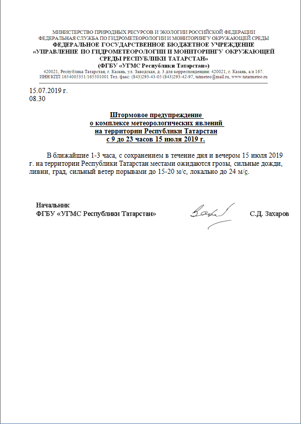 Штормовое предупреждение о комплексе метеорологических явлений