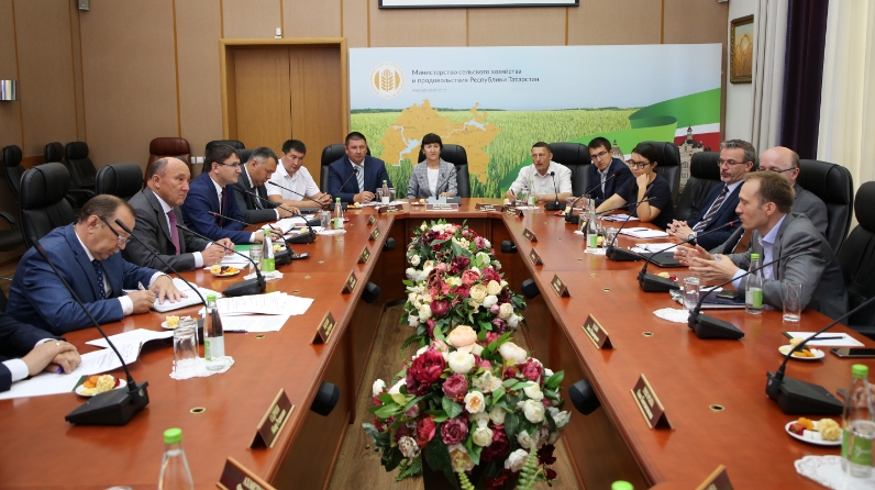 Вчера в Министерстве сельского хозяйства и продовольствия Республики Татарстан состоялась рабочая встреча по проекту «Разработка научно-обоснованной концепции общей системы селекционно-племенной работы с молочным скотом на республиканском уровне». В мероприятии приняли участие заместитель Премьер-министра РТ – министр сельского хозяйства и продовольствия Татарстана Марат Ахметов, заместитель министра Назип Хазипов, начальник Управления ГКУ «ГГСХУ племенным делом в животноводстве Минсельхозпрода РТ» Ришат Зарипов, директор Ирландской компании «Sustainable Food System Ireland» Дэвид Батлер, а также представители Сколковского института науки и техники, Казанской ветеринарной академии им Н.Э. Баумана, Татарстанской межрегиональной ветеринарной лаборатории и сельхозпредприятий республики.