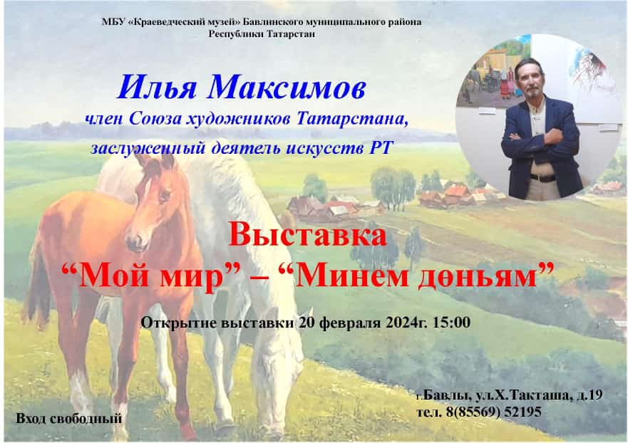20 февраля в 15.00 в Краеведческом музее Бавлов начнут работать выставки двух художников – членов Союза художников России и Татарстана Хамита Латыпова и Ильи Максимова.