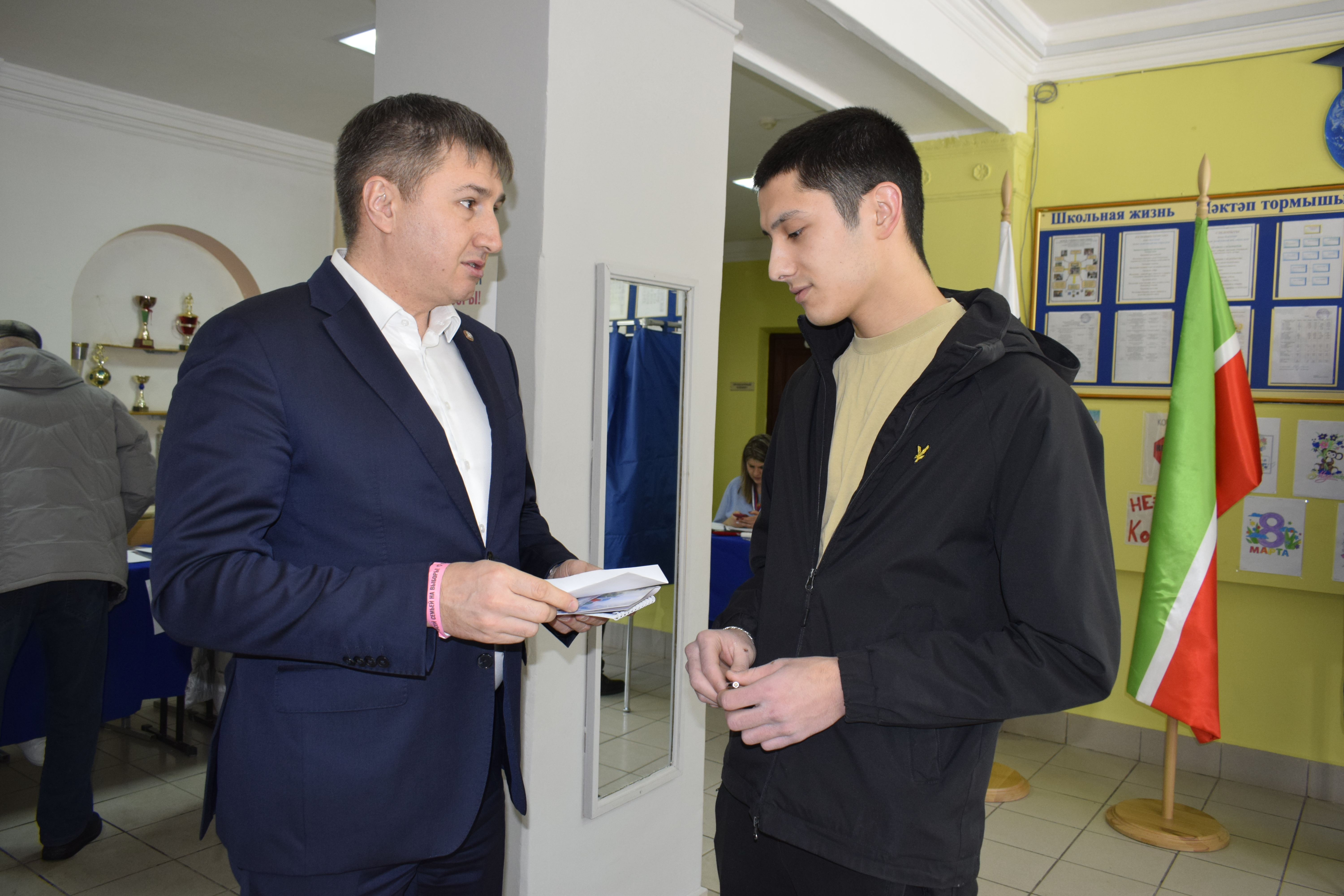 Бавлинец Радель Алексеев сегодня впервые принимал участие в голосовании и получил подарок из рук главы района. Такие подарки получат все молодые избиратели, которые проголосуют первый раз.