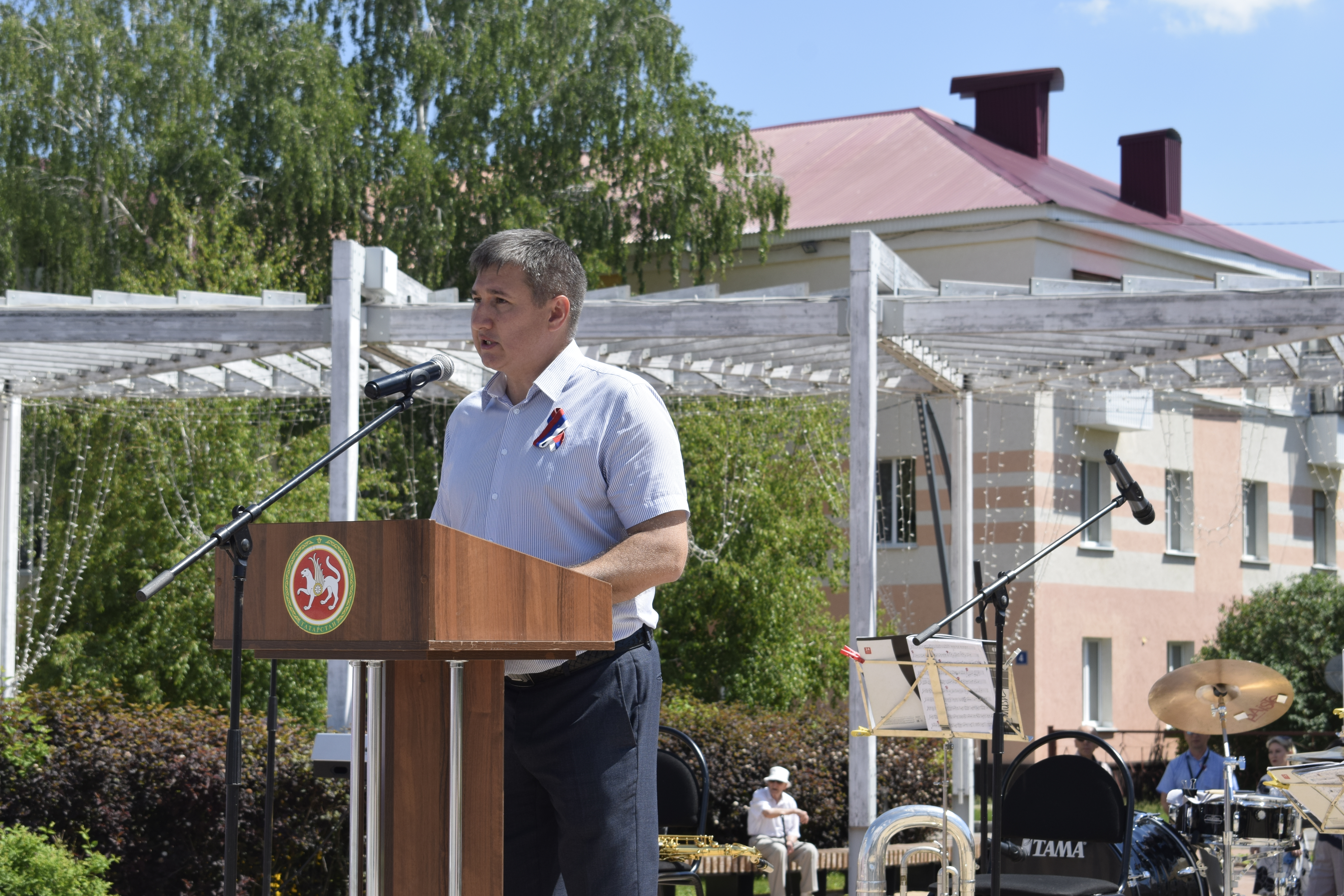 На главной площади Бавлов прошёл праздничный концерт с участием творческих коллективов города и района. Мероприятие открыл вокальный ансамбль «Сувенирчики». Горожан с важным государственным днём поздравил глава Бавлинского района Ильяс Гузаиров.