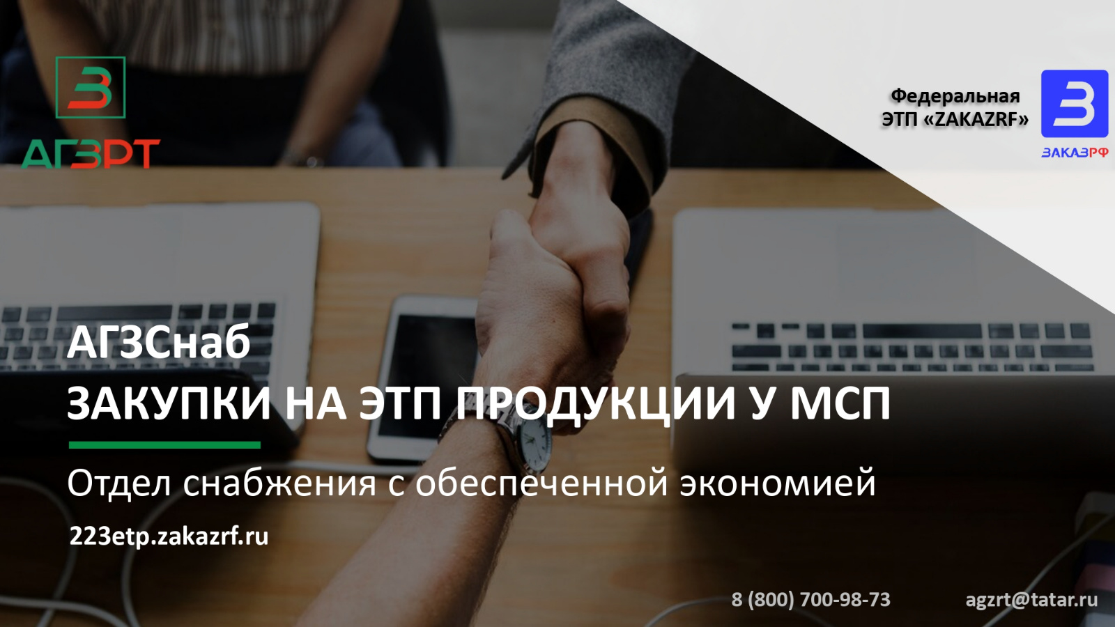 АГЗ РТ избавляет Вас от заключения договоров, с каждым новым поставщиком. Будет заключен один рамочный договор с АО «АГЗ РТ», как с поставщиком товаров по заявке.