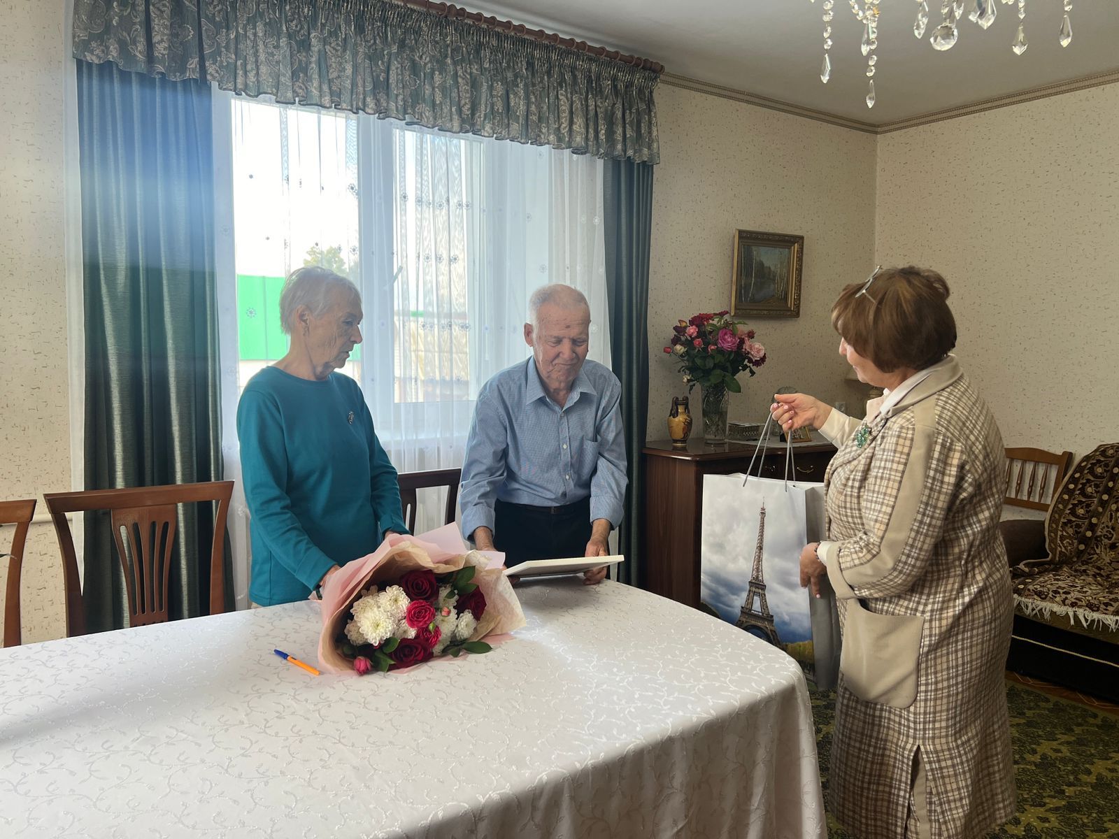 С замечательным юбилеем семейную пару поздравили заместитель руководителя райисполкома по социальным вопросам Ильмира Хуснуллина и начальник отдела ЗАГС Альбина Ахметова.