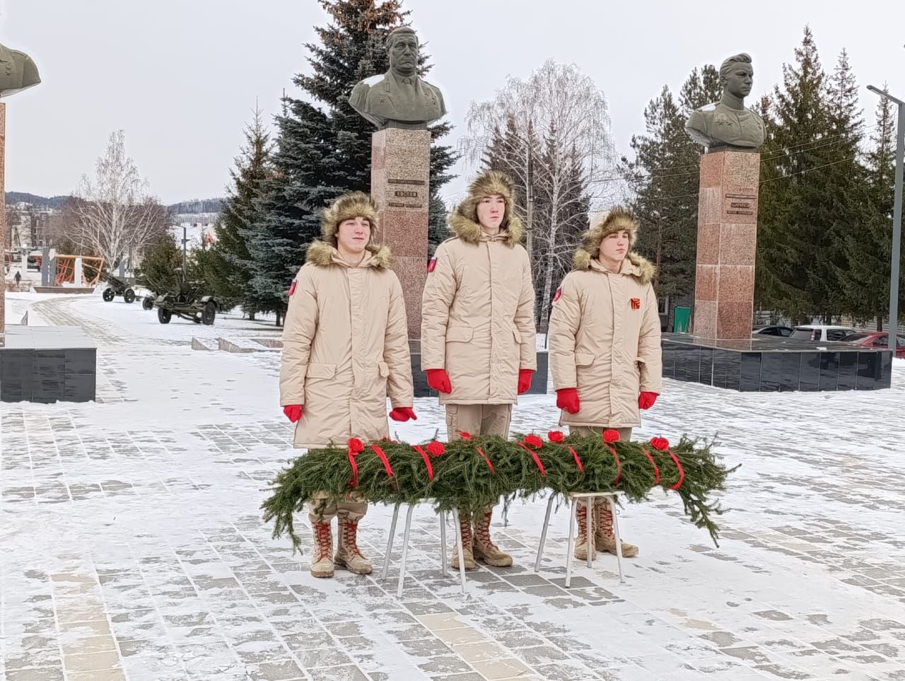 Почётный караул возле мемориала героям-землякам несли активисты отряда «Юнармия» школы №5.