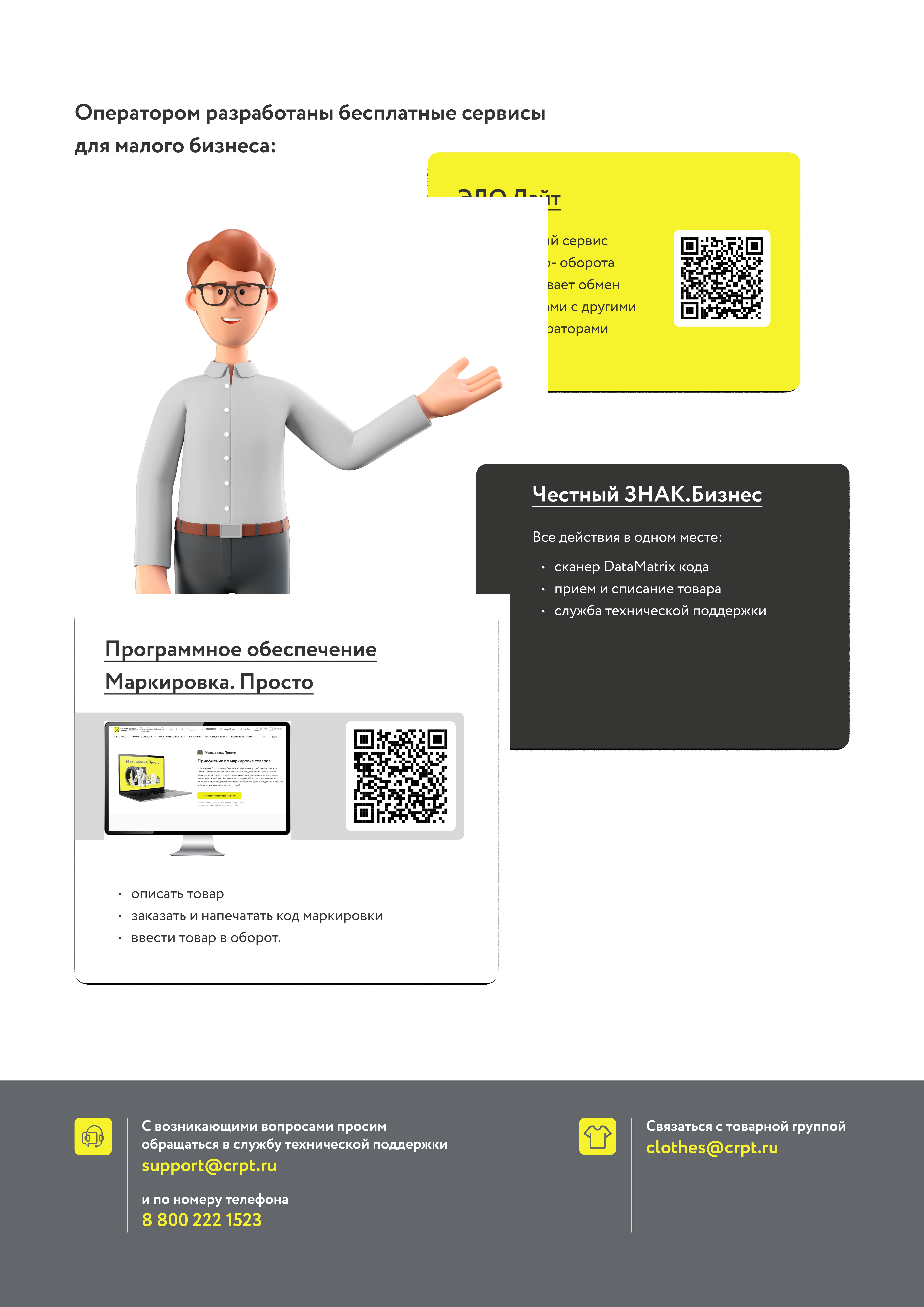 Более подробно с информацией о маркировке можно ознакомиться на сайте https://честныйзнак.рф/business/projects/light_industry/marking/manufacturer/launch_dates/.