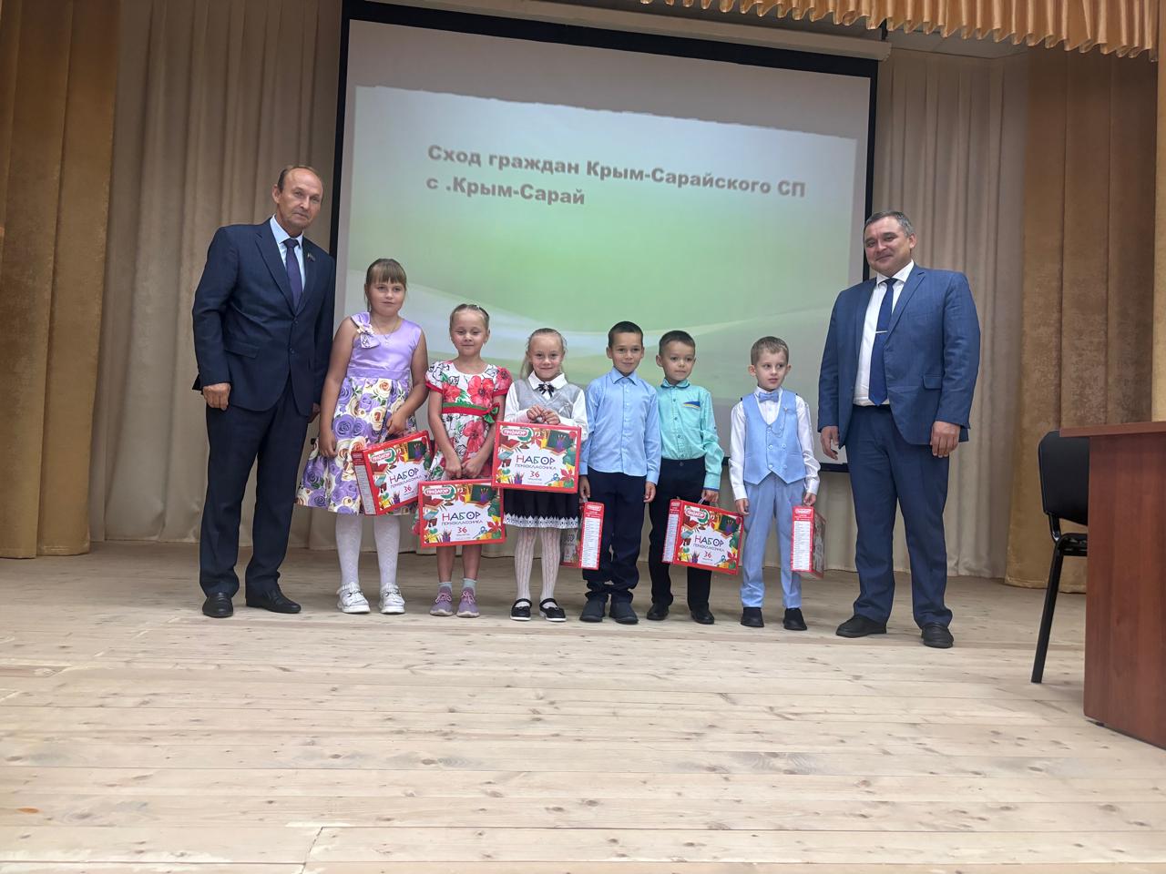 В рамках схода также прошла акция «Помоги собраться в школу» - первоклассникам вручили школьные наборы, а активных жителей села поощрили благодарственными письмами за их вклад в развитие территории.
