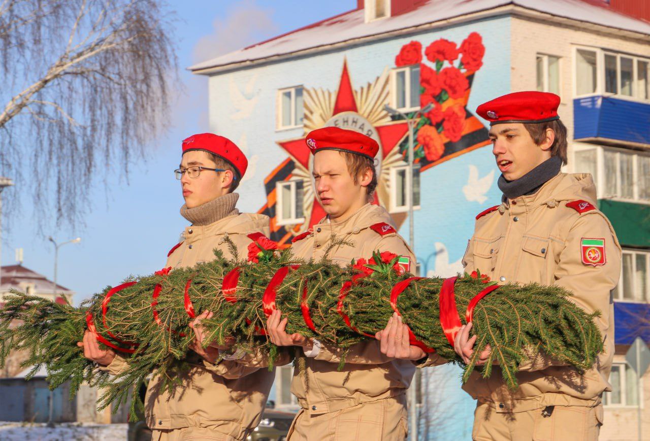 У мемориала воинам-землякам собрались руководство района, военкомата, учителя и учащиеся школ, активисты и представители молодежных общественных объединений, сотрудники полиции и пожарной части, а также работники Многопрофильного молодежного центра «Яшьлэр доньясы», чтобы почтить память героев, отдавших свои жизни за Родину.