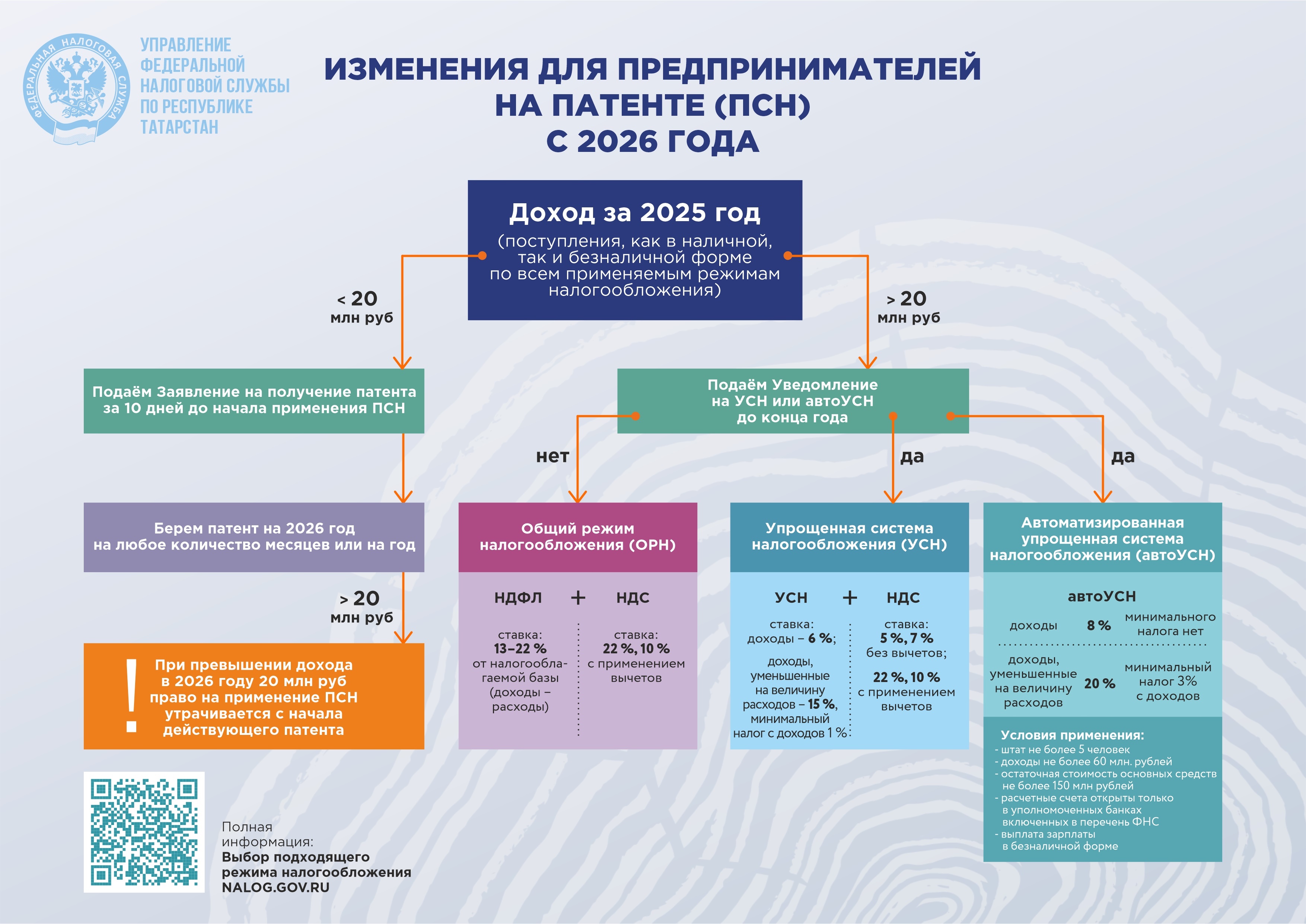При этом лимит в 20 млн рублей становится актуальным и для 2026 года: его превышение приведёт к потере права на ПСН. Для тех, кто не может определить лимит, возможно оформление патента не на год, а поквартально или помесячно — тогда в случае превышения 20 млн рублей право на ПСН будет утрачено только с начала того периода, на который выдан последний патент.