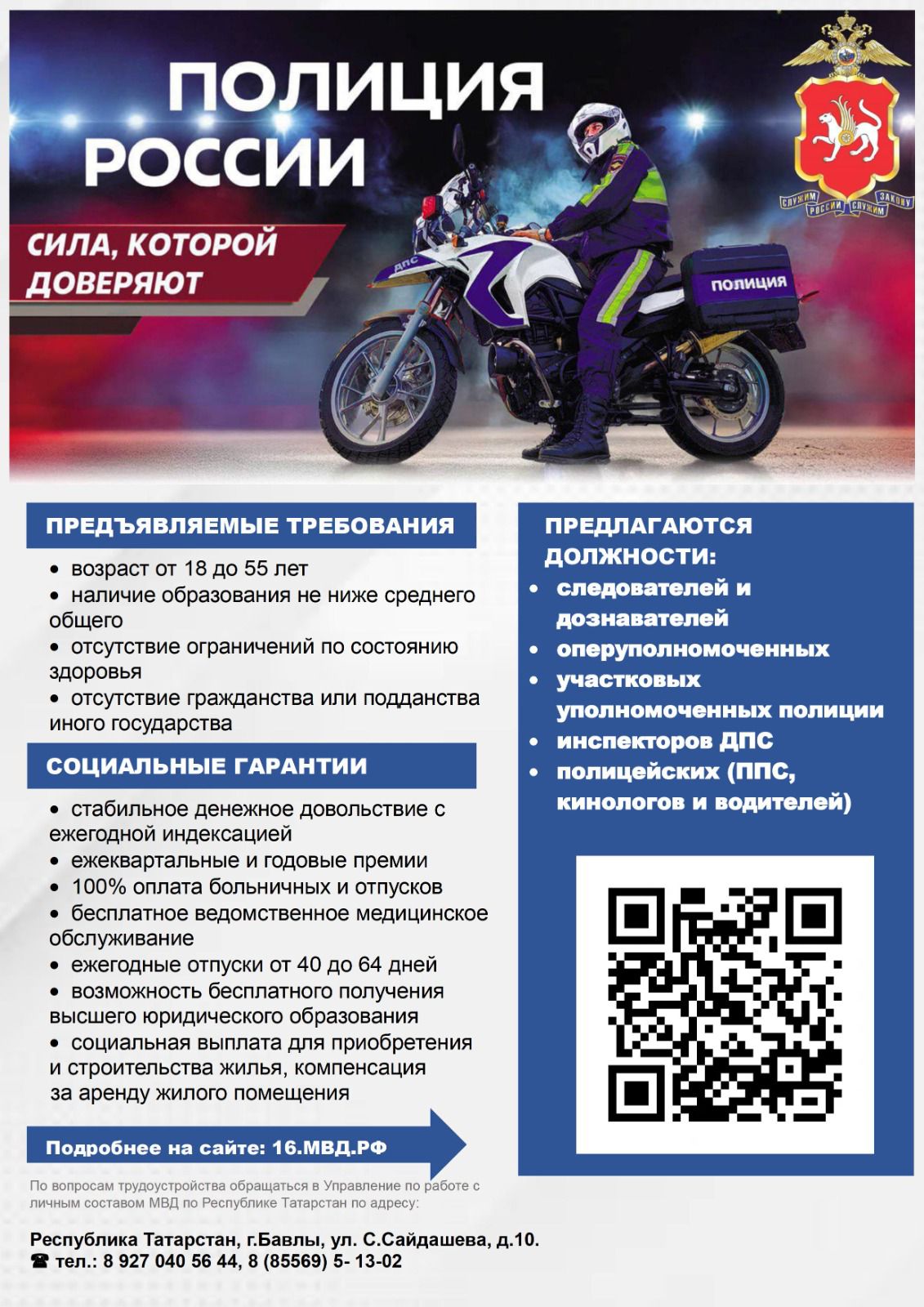 Отдел МВД России по Бавлинскому району приглашает на службу в полицию