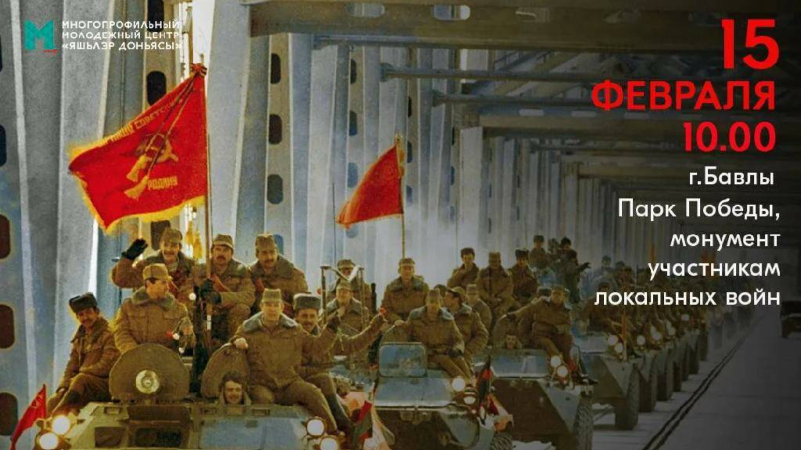 15 февраля в Парке Победы возле монумента участникам локальных войн состоится памятное мероприятие «Чтобы не забыть - надо помнить», посвященное 37-й годовщине вывода советских войск из Афганистана.
