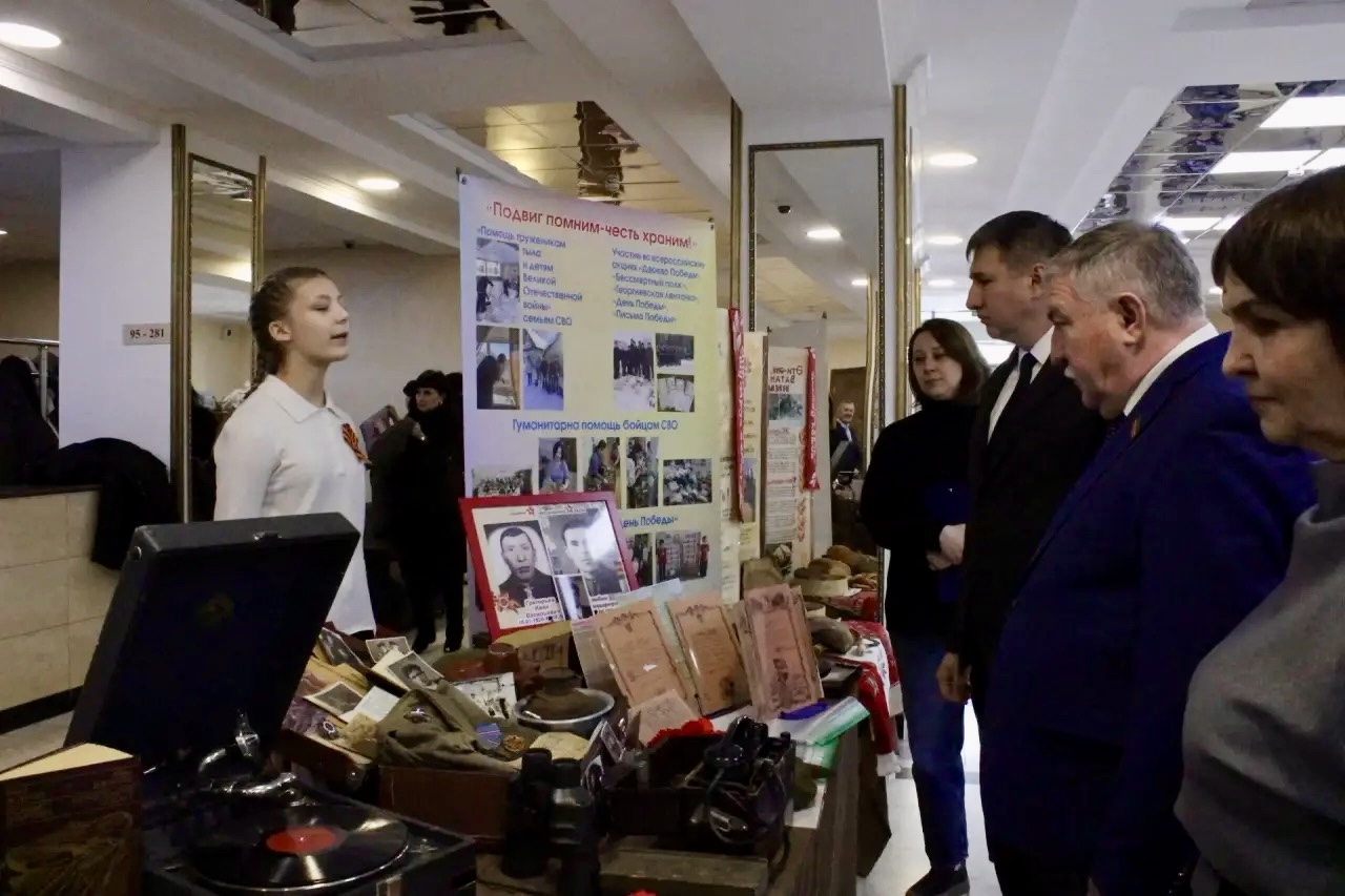 Гостей праздничного мероприятия в холле Дома культуры встречала выставка, демонстрирующая достижения и историю района, проекты учащихся школ. Также гости могли насладиться исполнением вальса от юнармейцев Бавлинского района. Ребята готовили выступление в течение месяца.