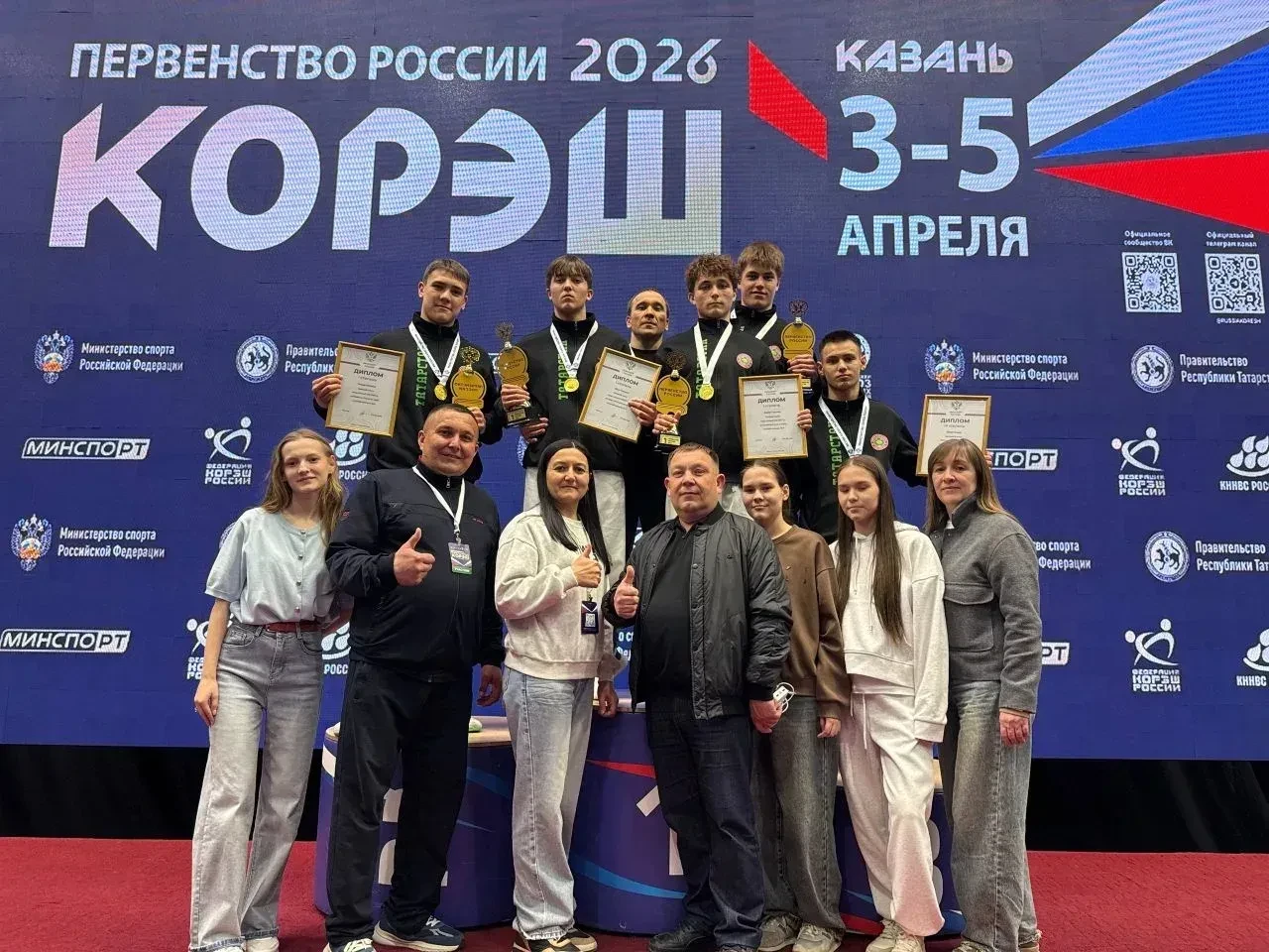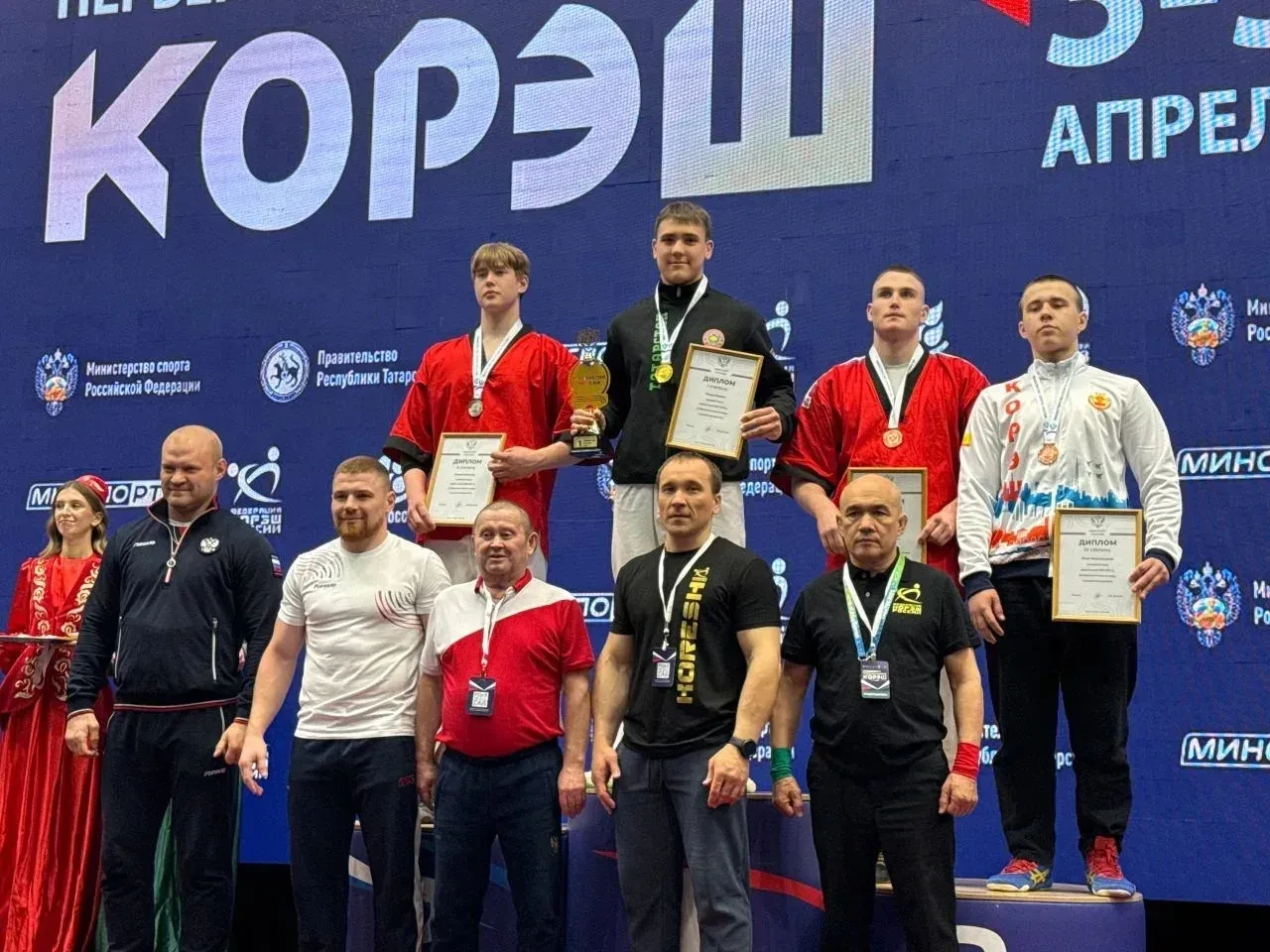 В Дворце единоборств «Ак Барс» города Казани завершилось Первенство России по борьбе корэш среди юношей. Заявки на участие в турнире подали представители более сорока регионов страны. Соревнования проходили в девяти весовых категориях в каждой возрастной категории: 13–14, 15–16 и 17–18 лет. В составе сборной Татарстана, защищая честь республики, выступили 27 борцов, пятеро из которых — представители Бавлинского района. Наши ребята показали блестящий результат, завоевав 4 золотые и 1 бронзовую медали. В общекомандном зачёте сборная Татарстана уверенно заняла первое место. Весомый вклад в этот успех внесли бавлинские спортсмены: каждый из пяти наших борцов в своей весовой категории поднялся на пьедестал почёта.