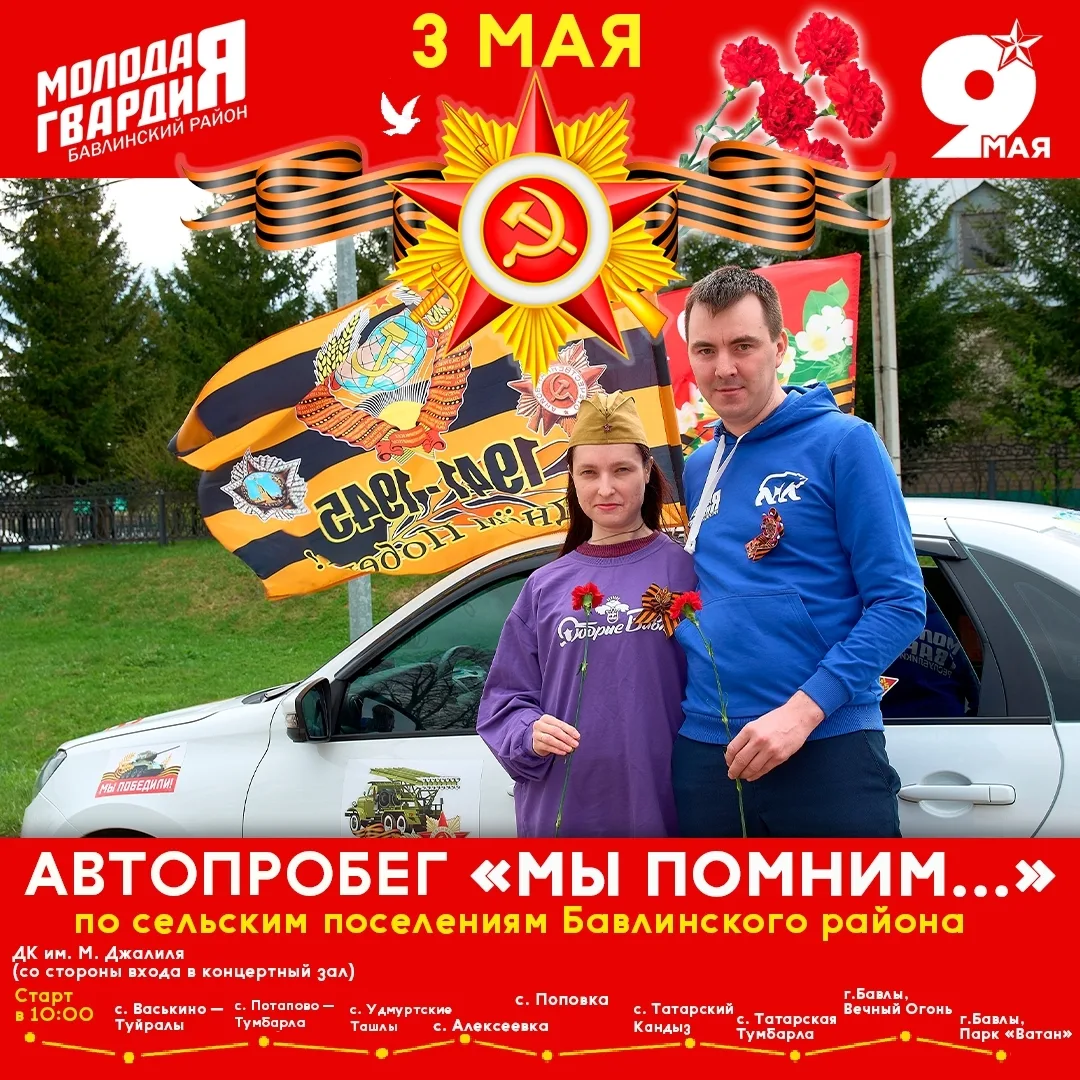 3 мая 2026 года, в честь 81-ой годовщины Победы в Великой Отечественной войне приглашаем всех жителей Бавлинского района присоединиться к патриотическому автопробегу «Мы помним». 🕘 10:00