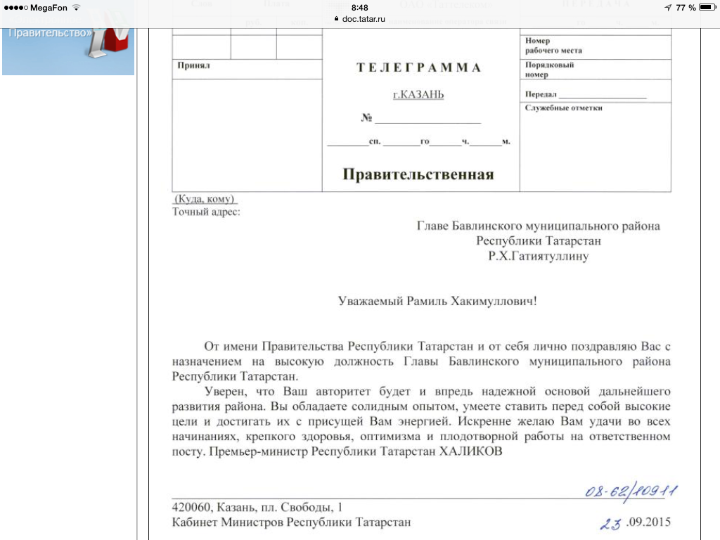 «Рассчитываю, что на этом ответственном посту Вы проявите свои лучшие деловые и человеческие качества, высокую активность и трудолюбие, будете эффективным руководителем, работающим на благо людей», — говорится в телеграмме главы республики, распространенной пресс-службой Президента РТ.