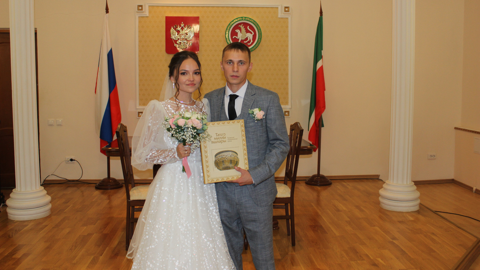Бу көнне бик күп эчкерсез һәм күңелгә үтеп керерлек теләкләр яңгырады. ГХАТ бүлеге хезмәткәрләре яшь парны котладылар һәм аларга символик бүләк тапшырдылар.