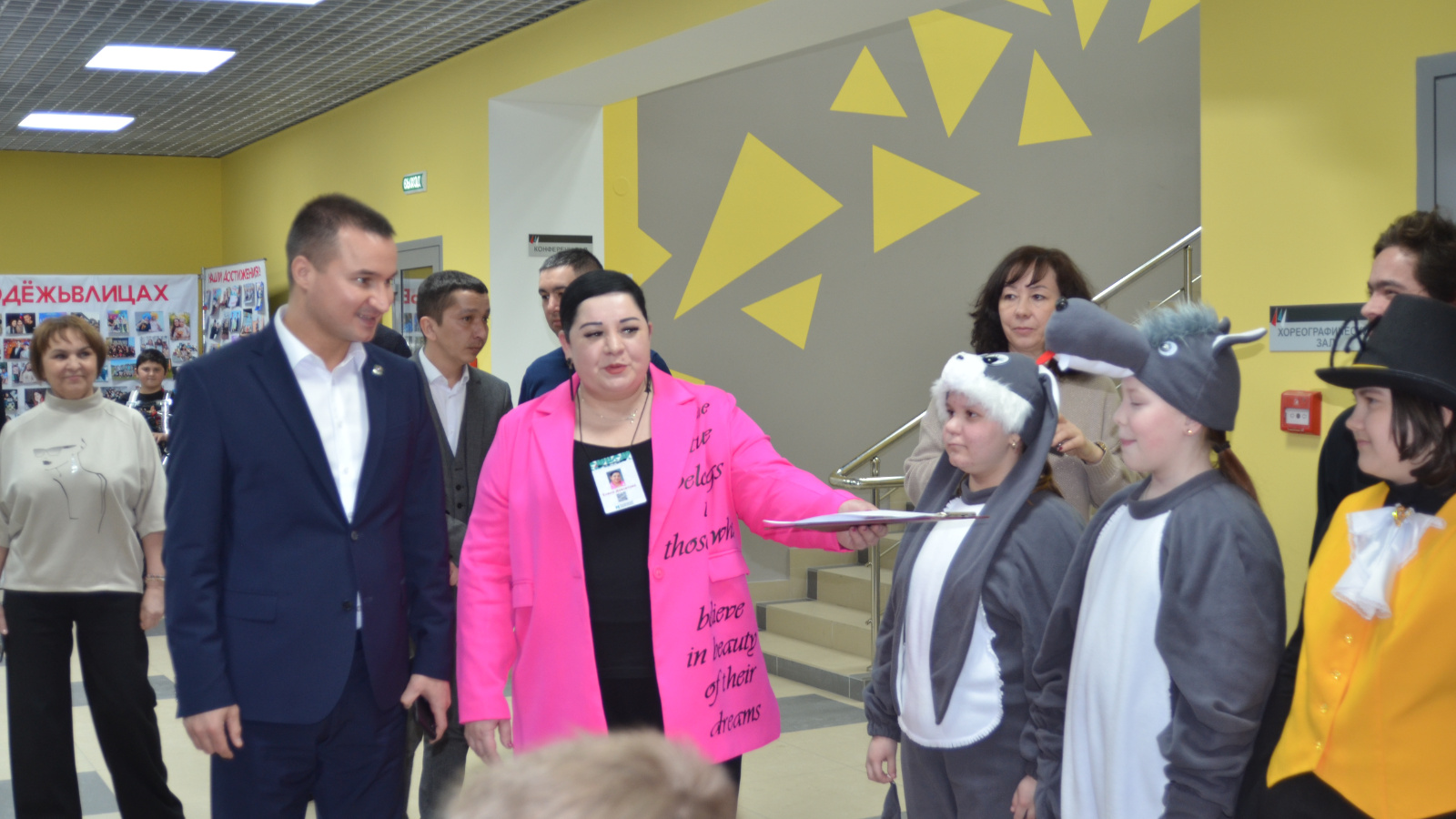 Ринат Садыйков район башлыгы озатуында бинаны ремонтлау сыйфатын карады һәм бәяләде, кызыксынулары буенча төрле юнәлешләргә йөрүче яшьләр һәм укытучылар белән аралашты. Аннары түгәрәк өстәл форматында кунаклар эшче яшьләр, төрле яшьләр берләшмәләре вәкилләре белән очраштылар.
