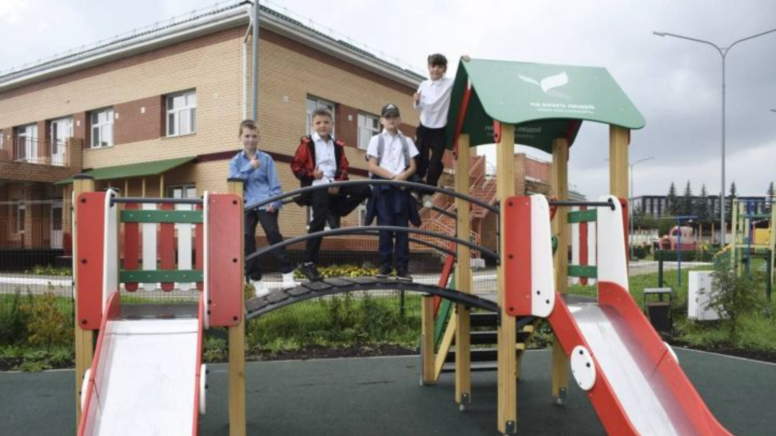 Мәйданчык заманча стандартларга туры килә. Аның өслеге эшкәртелгән резинадан эшләнгән һәм балаларның сәламәтлеге өчен куркынычсыз.